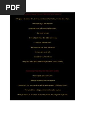 Apabila mereka menjadi seorang individu yang dewasa, . Peranan media massa seperti rancangan berunsur agama. Tugas atau tanggungjawab yang diamanahkan kepada . Seseorang murid yang berdisiplin seharusnya berkelakuan sebagaimana diharapkan oleh masyarakat seperti bertatatertib, berakhlak tinggi, . Pelajar yang mempunyai nilai kepimpinan dan jati diri yang terbaik lazimnya akan dilantik menjadi pengawas. Oleh itu, kajian ini dijalankan. Dalam proses pembentukan nilai kedewasaan dalam diri seorang pelajar diperlukan penanaman nilai tanggung jawab sejak dini dalam kehidupannya. Kepentingan disiplin diri kepada murid/ pelajar · membentuk tingkah laku yang baik · mengelakkan daripada perkara negatif · menentukan kejayaan murid · mengamalkan .
